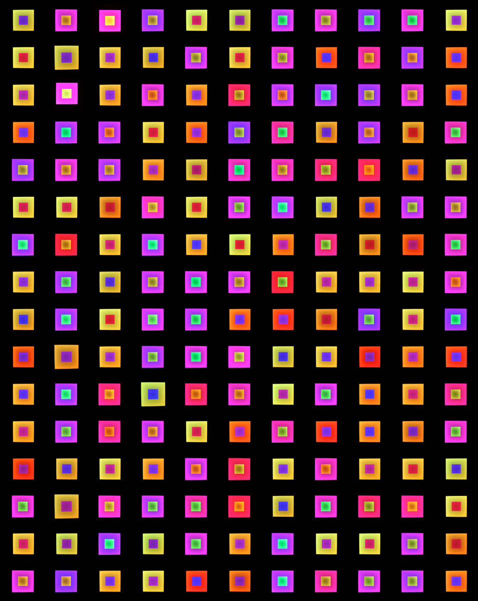 In Relation to Colour is a study in the relations between colours. The changing relations tickles our perception and brings out the question of what really is in front of us and what is brought there by our imagination.