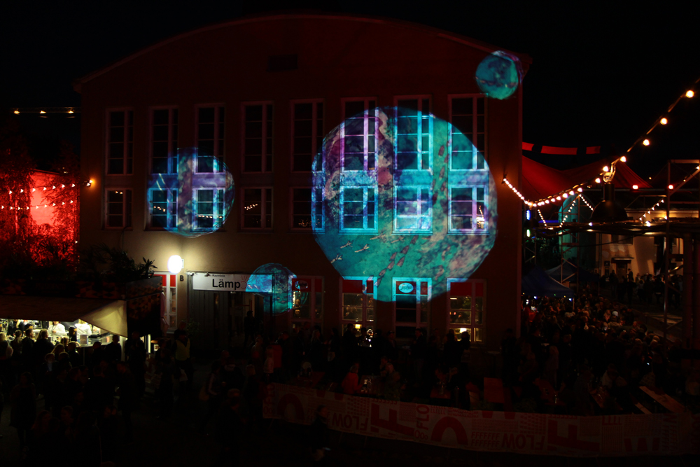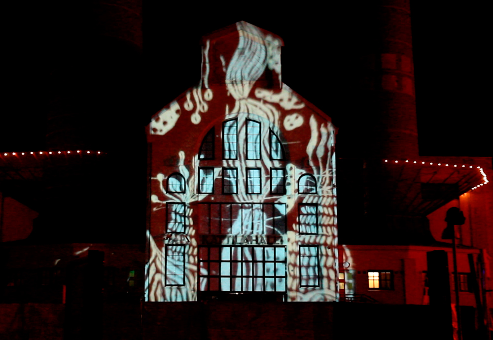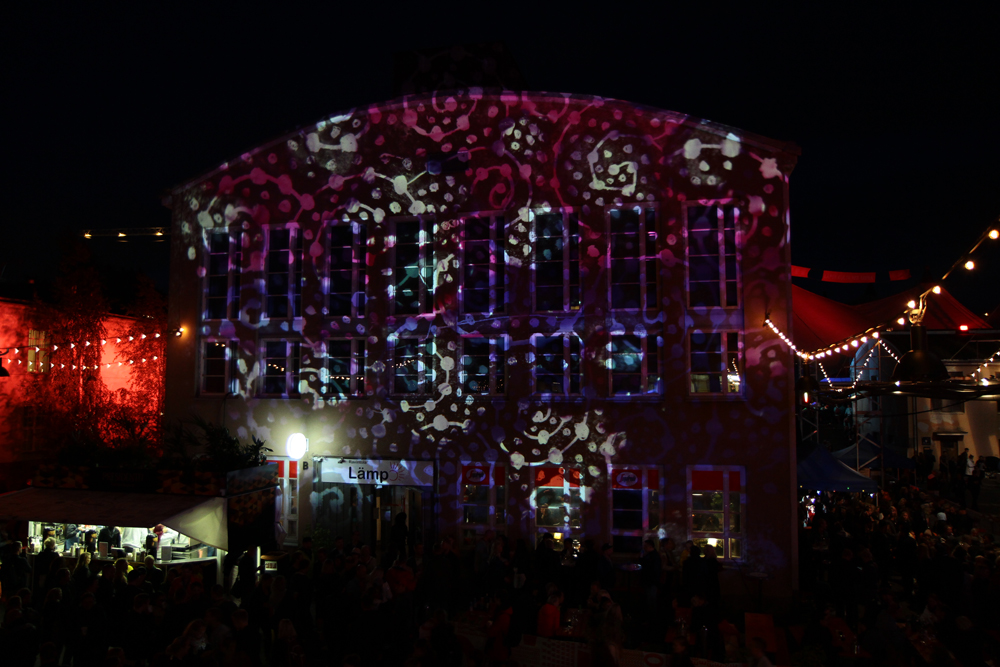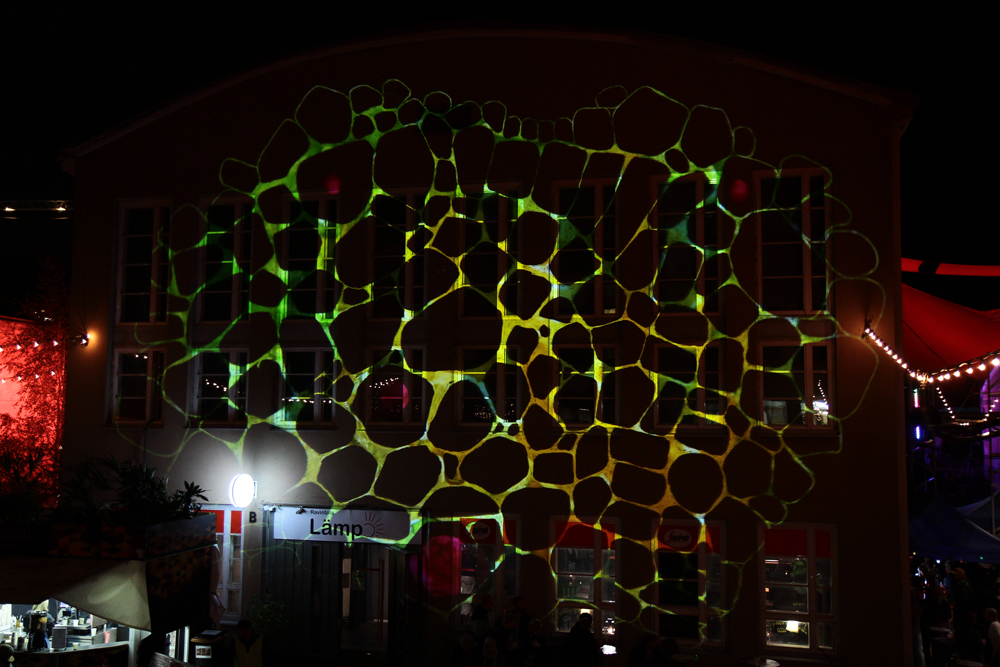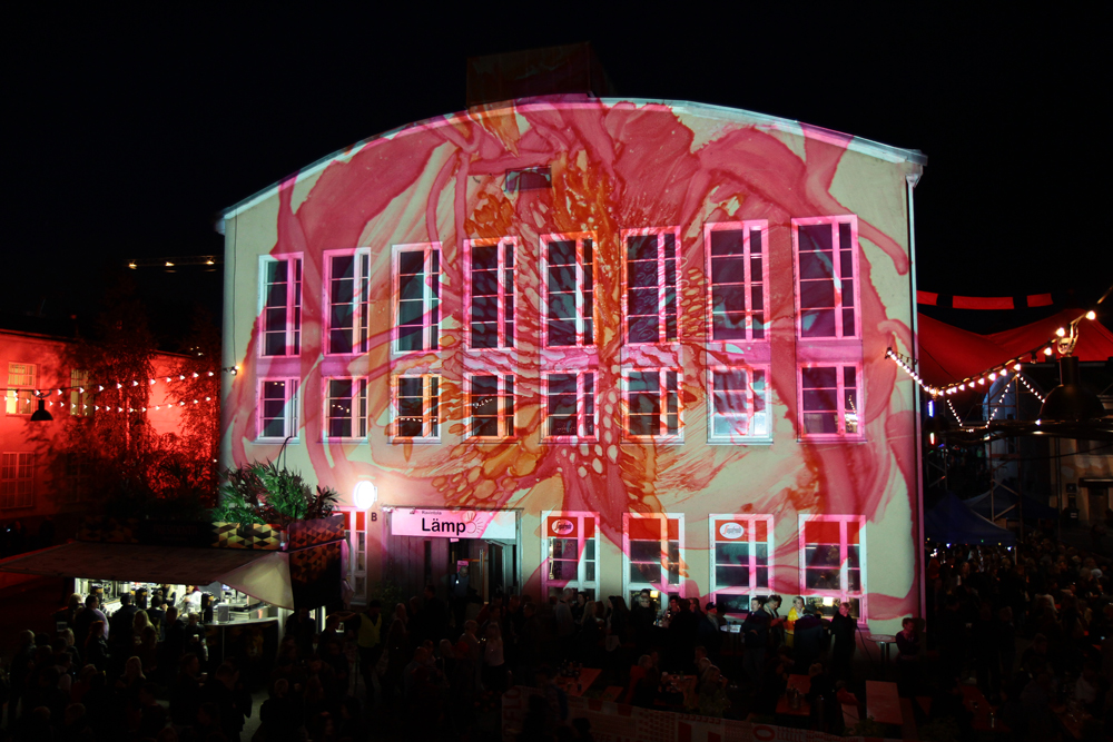 Macroscopic was a Pani projection art project at Flow Festival 2016 in Helsinki Finland. The underlying theme of the works was the change in scale from the small drawing to the big scaled analog projection on the wall. Small details become large and large things become small. The artists have taken inspiration from the looks of small bacteria and fungi, the visions on a microscopic scale to the ultimately large macroscopic world of deep space, black holes and nebulas.